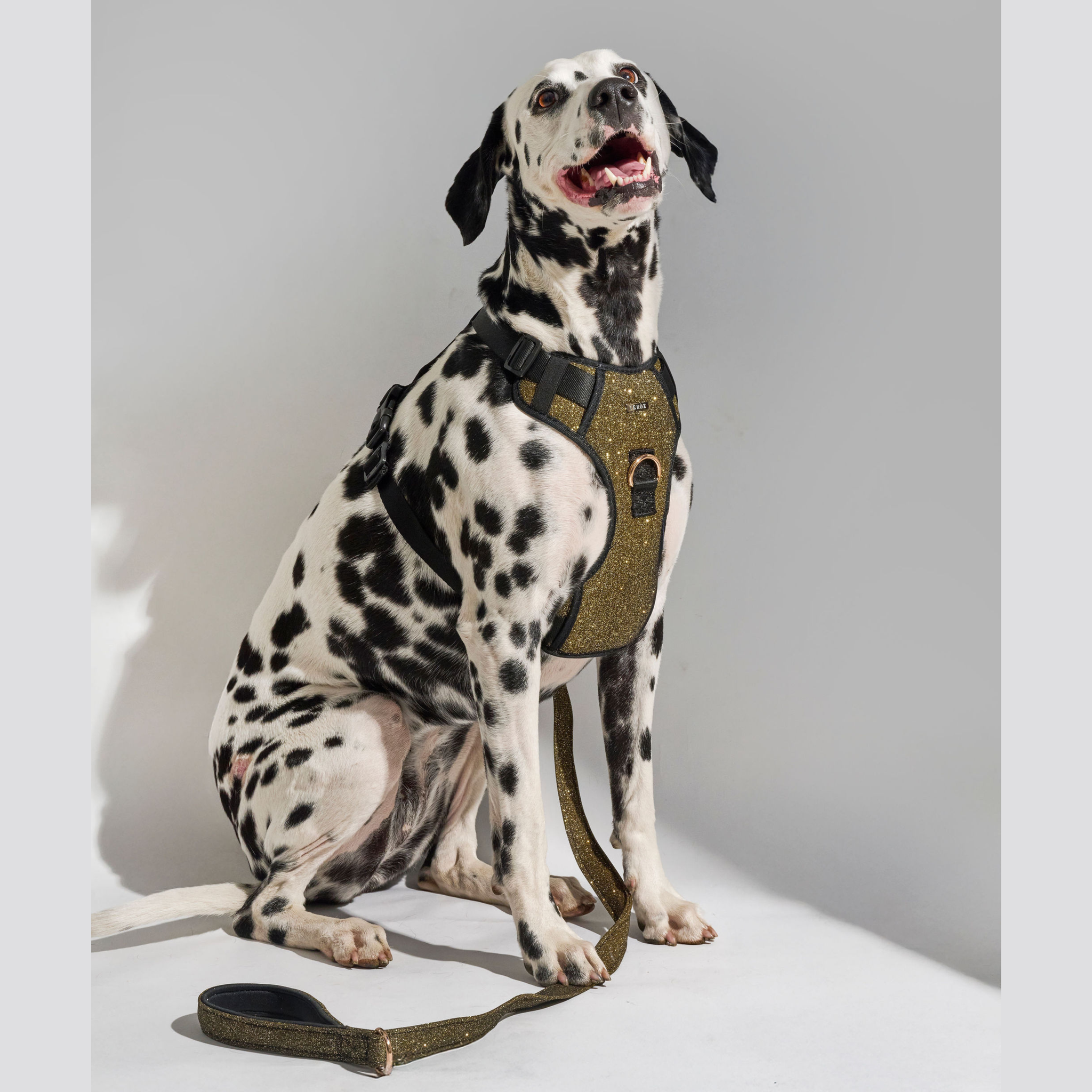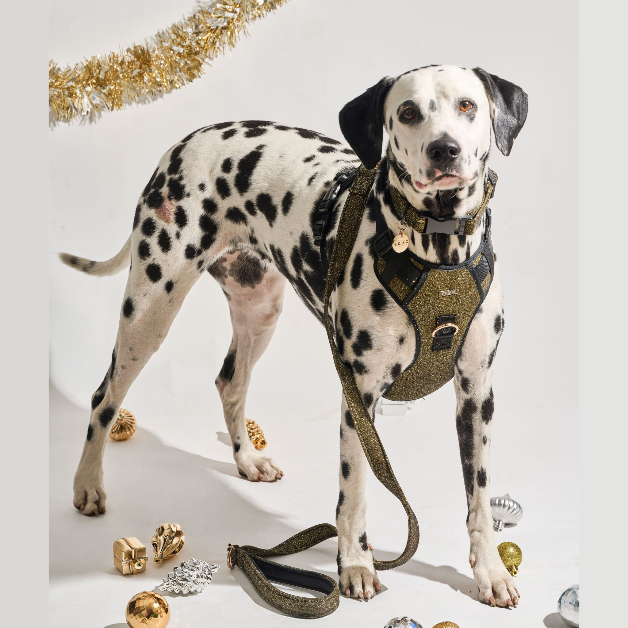 La correa Frost Feroz combina elegancia y funcionalidad para que disfrutes de la temporada navideña con estilo junto a tu perro. Su exterior en lycra lurex (poliamida, elastano y fibras metálicas) brinda un brillo festivo único, mientras que la manija reforzada en neopreno ofrece mayor suavidad y confort en la mano del humano durante los paseos. La media argolla en zamak permite agregar accesorios como bolsas o charms, y su construcción resistente garantiza seguridad en el día a día.